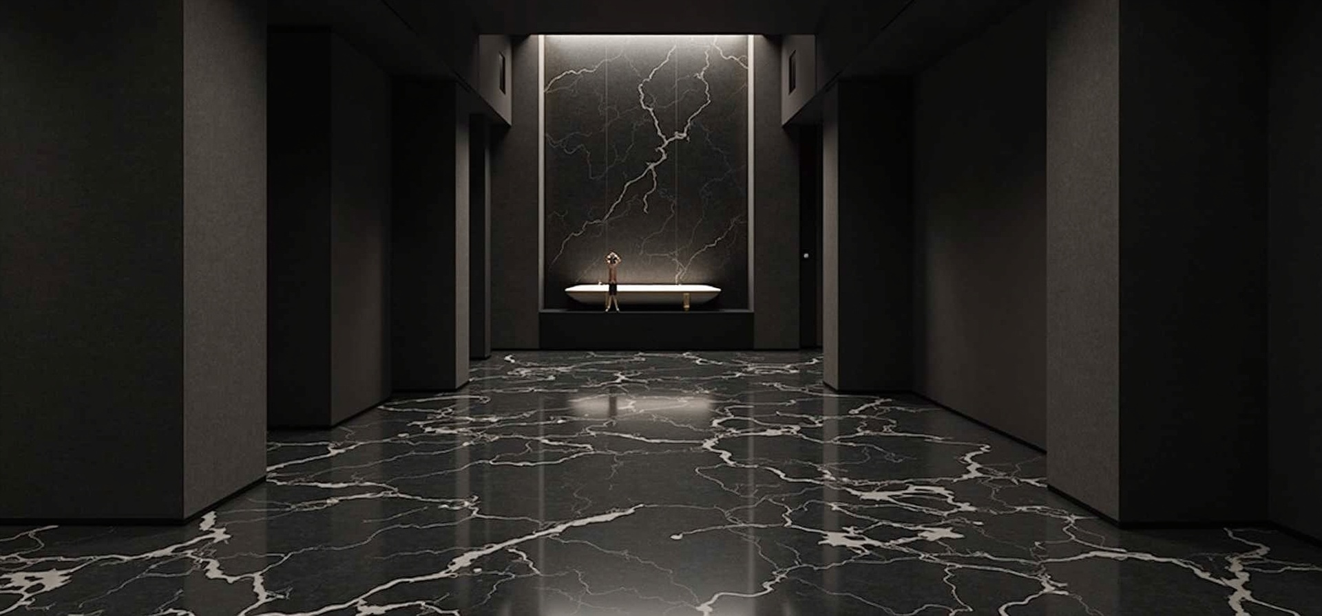 Floor-to-ceiling seamless resin walls that create texture, depth, and architectural drama.